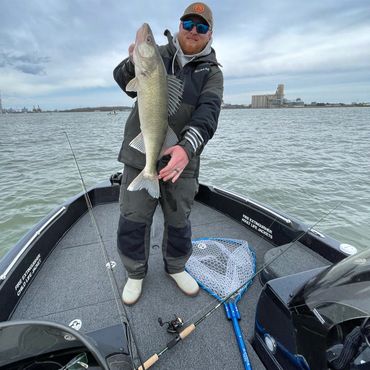 The first week of April sparked the return of giant great lakes walleye into the Detroit River. Early in the month we had a great color in the water and several huge hens hit the net. Vertical jigging dark colored plastics with a live emerald shiner was the key to getting those big girls to bite. Limits were not caught on every trip, but the quality of the fish we did catch more than made up for the quantity. Once the water warmed up a bit during the second week of the month the bite was hot and heavy with limits almost every trip out. Finding the stained water was key along with staying tight to the breaks near spawning flats with a hard bottom. The bite stayed strong for the rest of the month and we bounced between the Detroit and St. Clair Rivers.