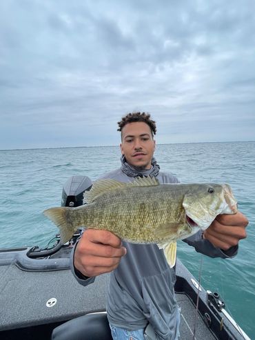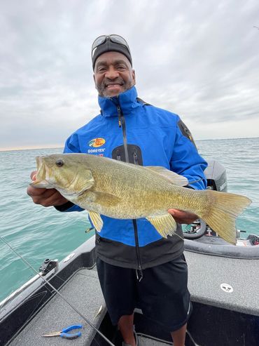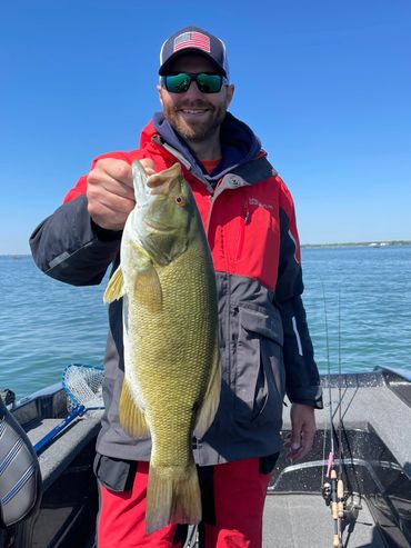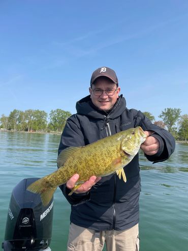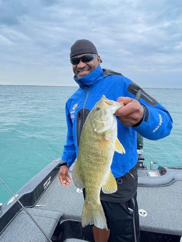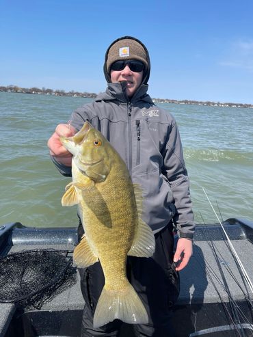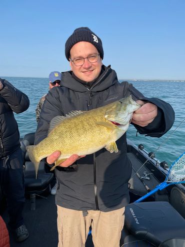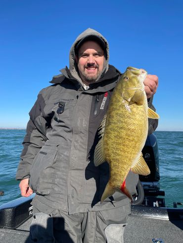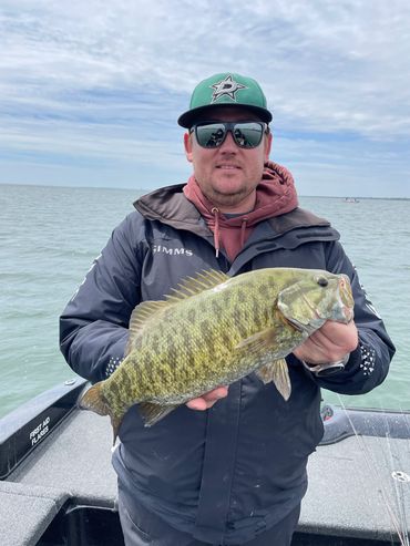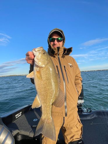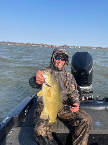 April greeted us with many days of East winds and dirty water. We had several warm ups followed by extreme cold fronts the entire month. The smallmouth fishing was very good when the wind and water color allowed us to get out. The biggest smallmouth of the month came while jigging for walleye and weighed in at 6 pounds 4 ounces, an absolute St. Clair stud. Along with guiding I hopped in the boat with Detroit Lions Pro Bowl Center, Frank Ragnow and filmed a segment for Michigan Out-of-Doors Television.