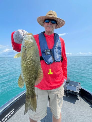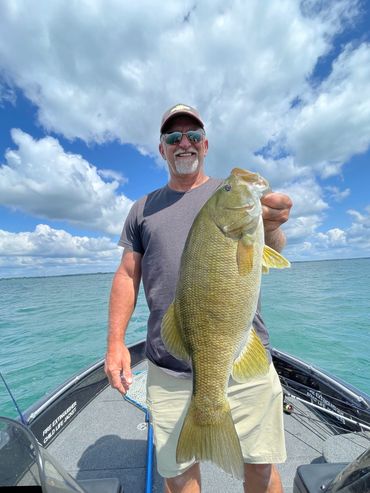 The month of July started off right where June ended. More and more fish started to show up offshore and fishing remained excellent. Drop Shot with the Erie Darter was still hot along with the Ned Rig with an array of soft plastics. When the wind kicked up, depending on the skill level of the clients, we were able to catch fish cranking and throwing swimbaits. Several fish over 5 pounds were boated during the month of July. Weekends were very busy with an abundance of pleasure boats and some of the heaviest fishing pressure I have ever seen on Lake St. Clair, making fishing on weekdays ideal.